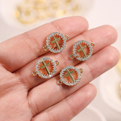 Conector para pulsera en forma de cruz circular con zirconia