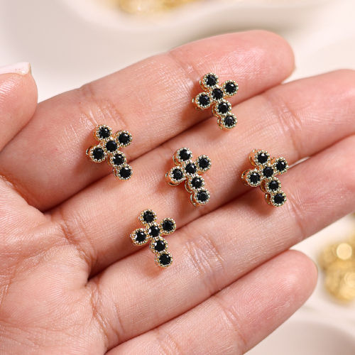 Conector para pulsera en forma de cruz zirconia negro