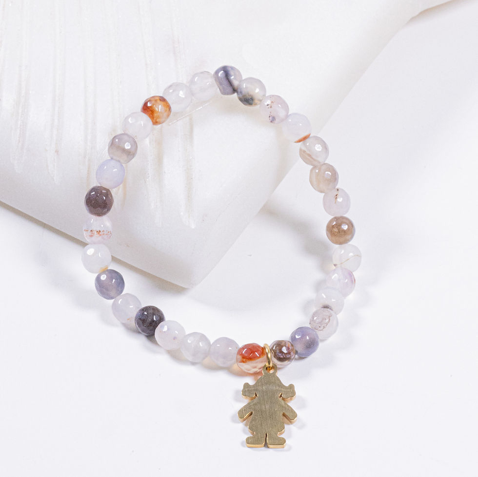 Pulsera Ágata Café Dijes Caracol Y Corona